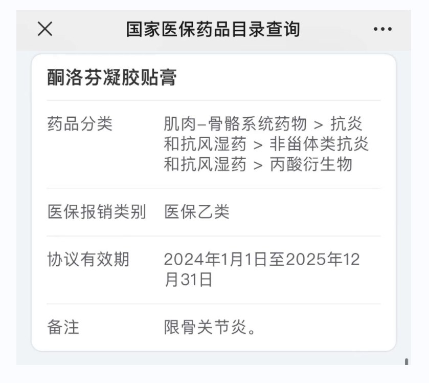 酮洛芬凝膠貼膏進入國家醫(yī)保目錄