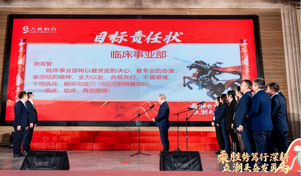 楊總指出,2024年九典制藥將堅(jiān)持合規(guī)高效的經(jīng)營(yíng)總基調(diào),聚焦目標(biāo)市場(chǎng)集中發(fā)力,實(shí)現(xiàn)營(yíng)收規(guī)模與發(fā)展質(zhì)量的再度齊步跨越。希望全體九典人繼續(xù)弘揚(yáng)敢打敢拼、開(kāi)拓進(jìn)取的奮斗精神,在細(xì)處求精益,在寬處謀布局,在高處爭(zhēng)獨(dú)到,為將九典打造成國(guó)內(nèi)經(jīng)皮給藥領(lǐng)域龍頭企業(yè),向著成為全國(guó)醫(yī)藥行業(yè)領(lǐng)跑者之一的目標(biāo),踔厲奮發(fā)、勇毅前行。
